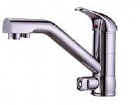 Krómozott, háromutas fém csaptelep, amelyet a hagyományos kiállások mellett a háztartási RO víztisztítókhoz lehet csatlakoztatni.